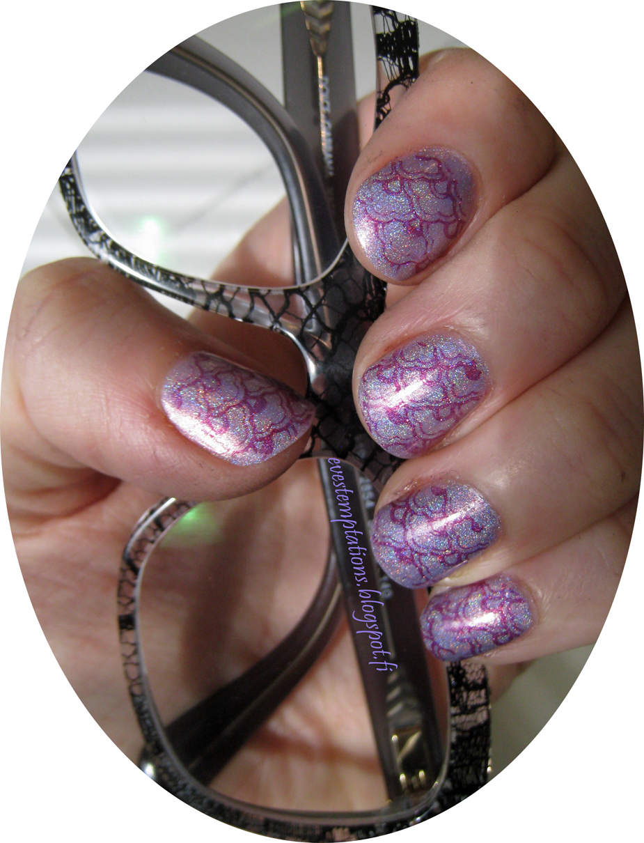 Nämä kynnet yllätti myös - voin yhden käden sormilla laskea kerrat joilla olen leimannut kaikki kynnet ja vieläpä samalla kuviolla! Mutta kertakaikkisen kauniithan niistä tuli, OPIn DS Extravagancella on vaikea epäonnistua?